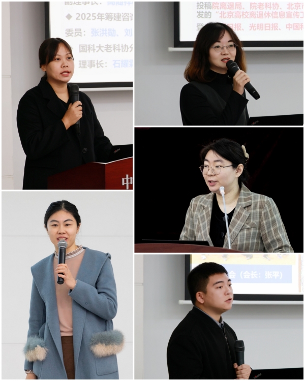 离退办工作人员张薇、王亚、陈希、吴双、魏明分别介绍了离退办工作,包括离退休教职工福利待遇及文体活动、老科协及关工委工作、宣传与信息化工作等。退休是人生历程的转折点,是新生活的开始,离退办将不断提升服务水平,为大家的退休生活保驾护航。
