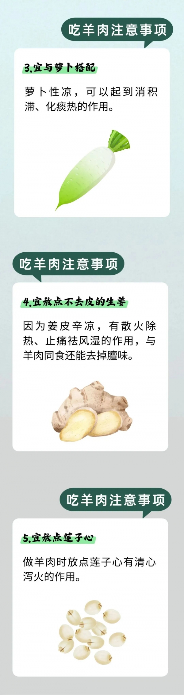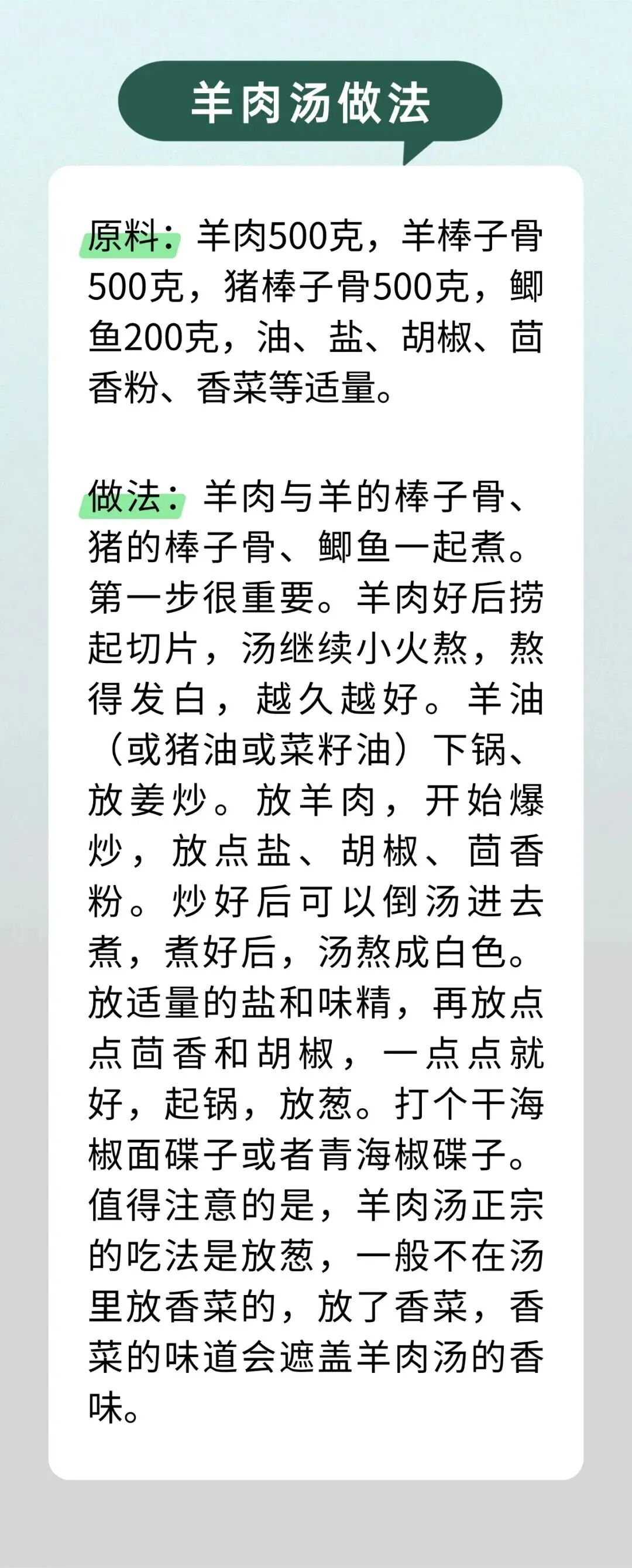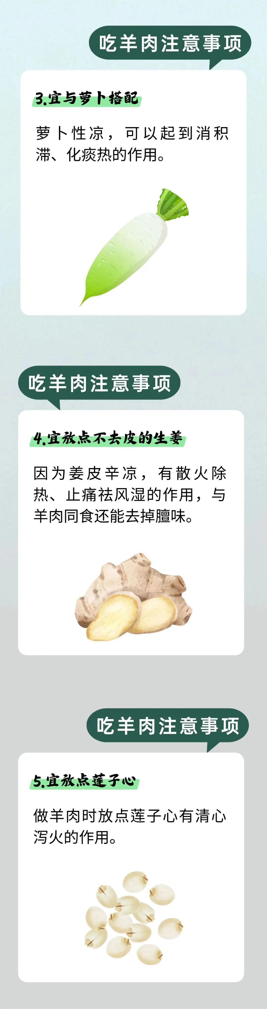羊肉味甘而不腻,性温而不燥,具有补肾壮阳、暖中祛寒、温补气血、开胃健脾的功效。冬季,人体的阳气潜藏于体内,所以容易出现手足冰冷,气血循环不良的情况。所以冬天吃羊肉,既能抵御风寒,又可滋补身体,实在是一举两得的美事。